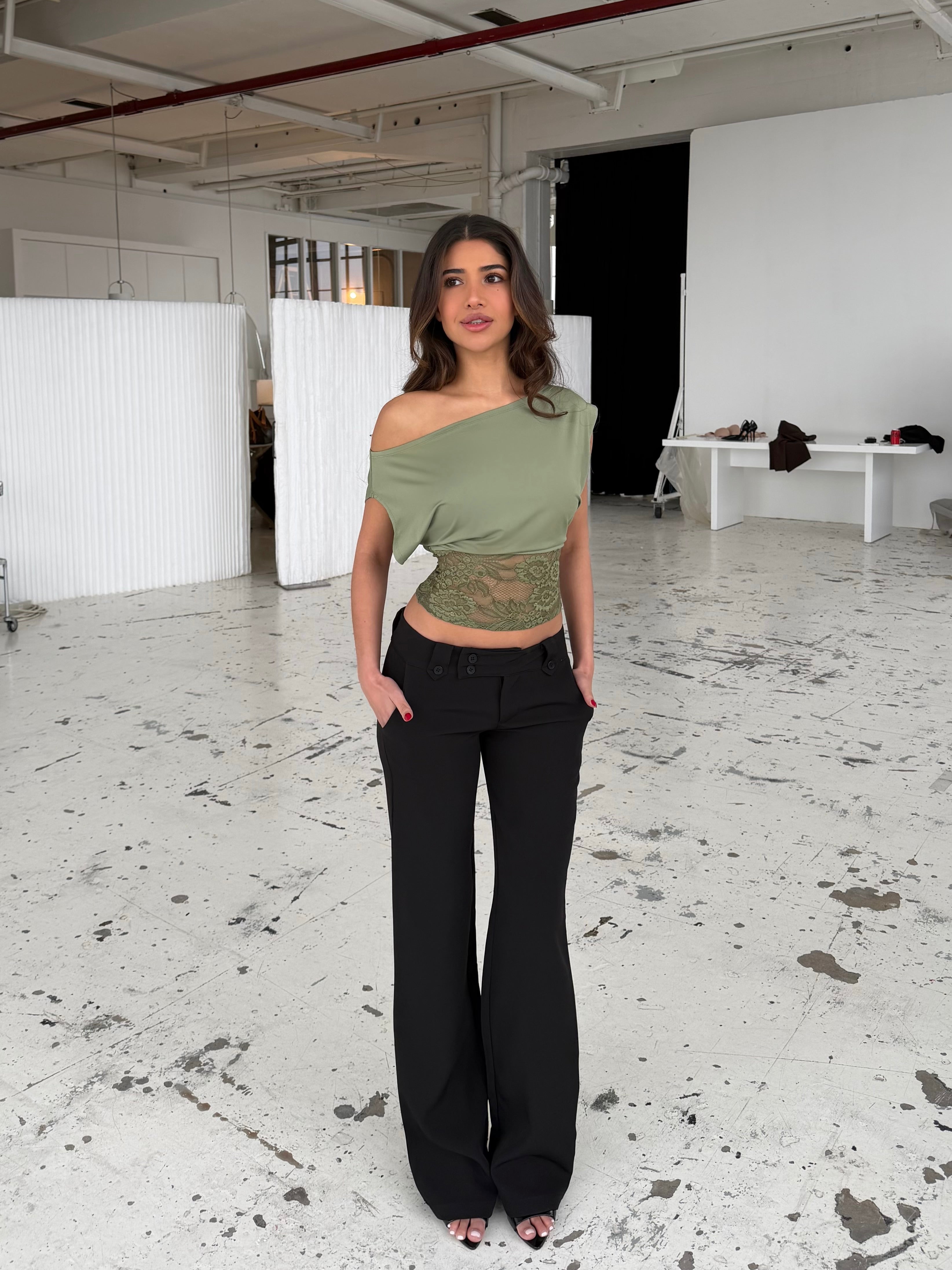 Beautiful lace top made from a highly stretchy material that fits the body elegantly. The top can be styled in different ways depending on preference.