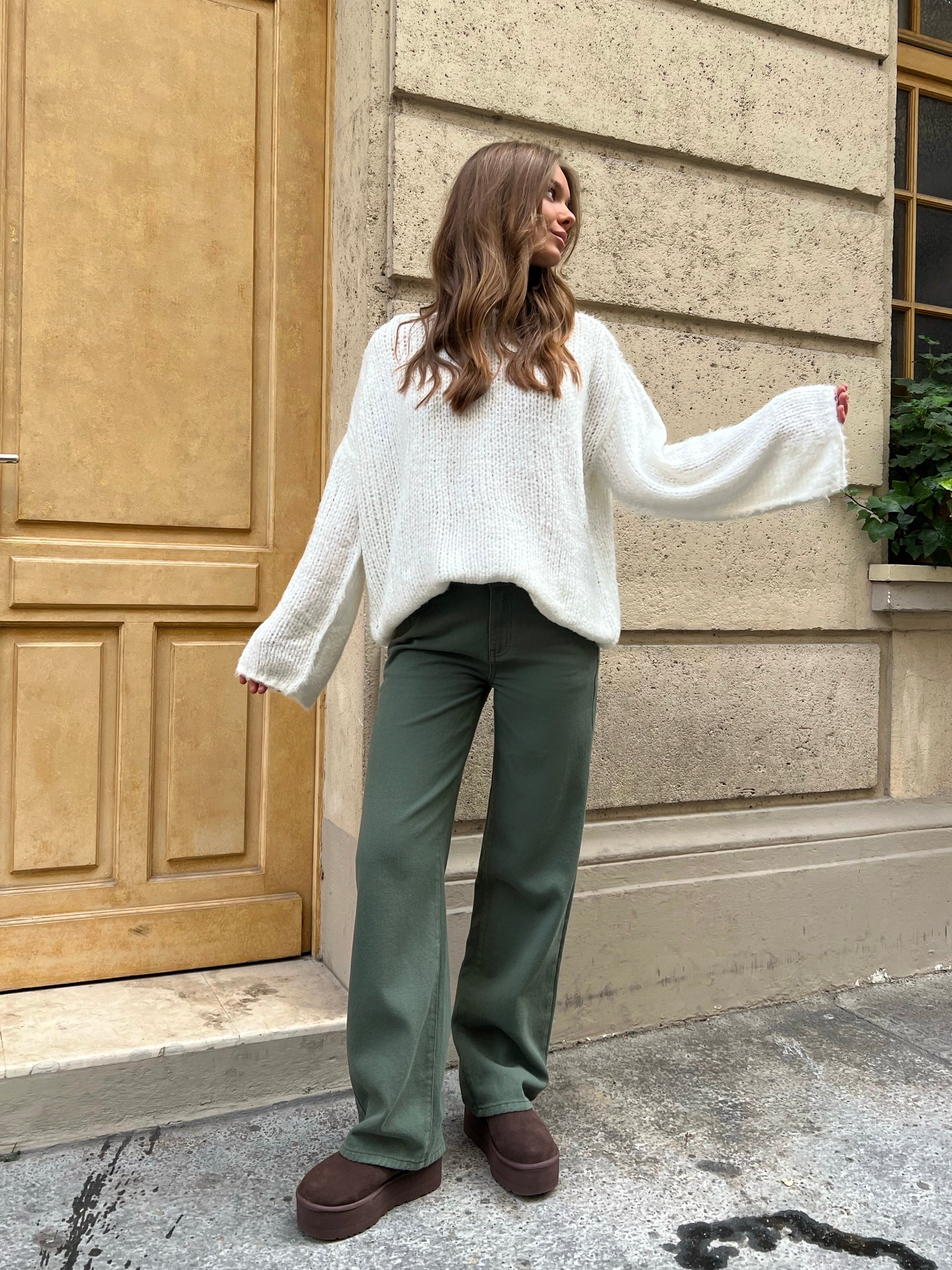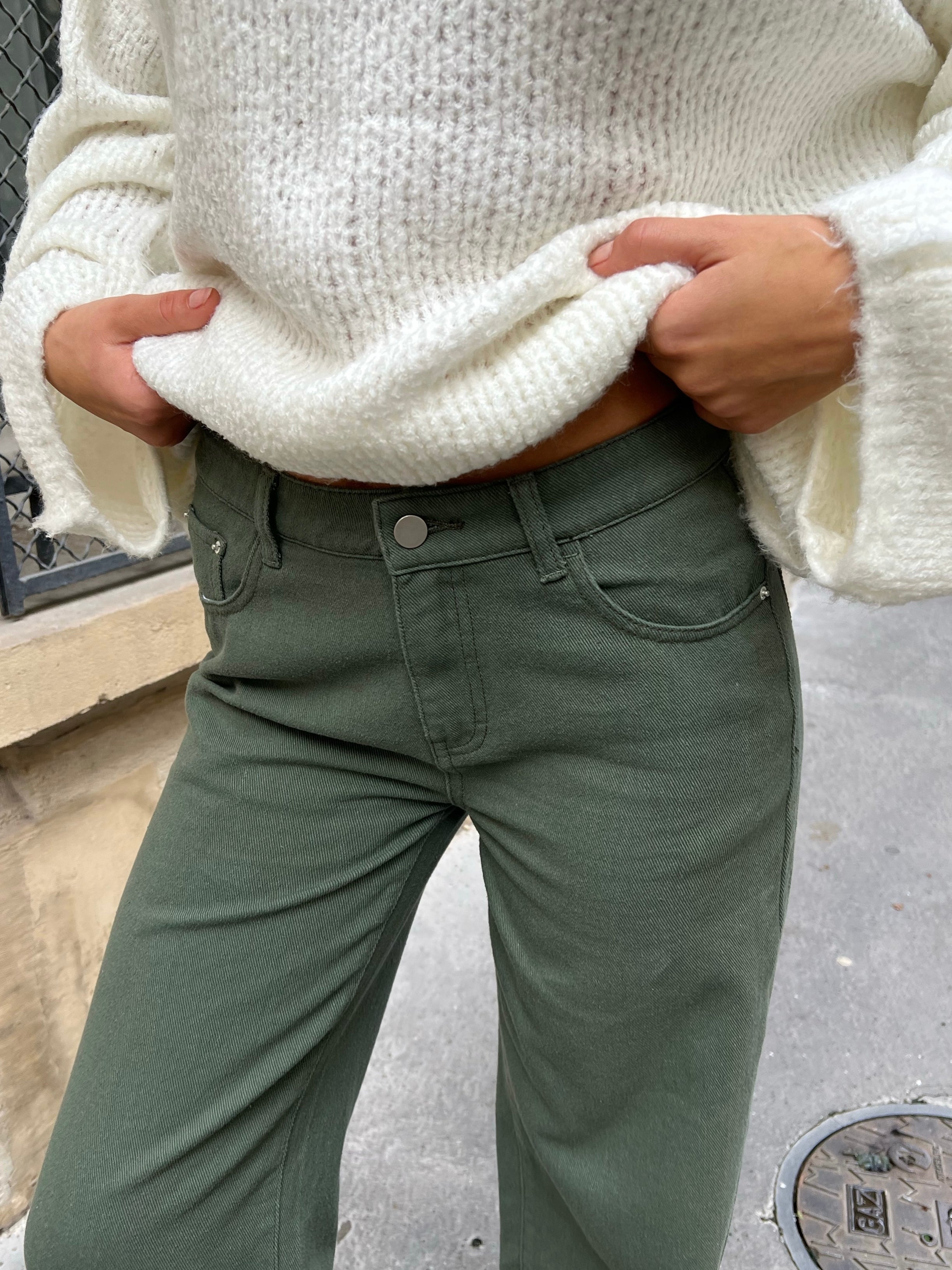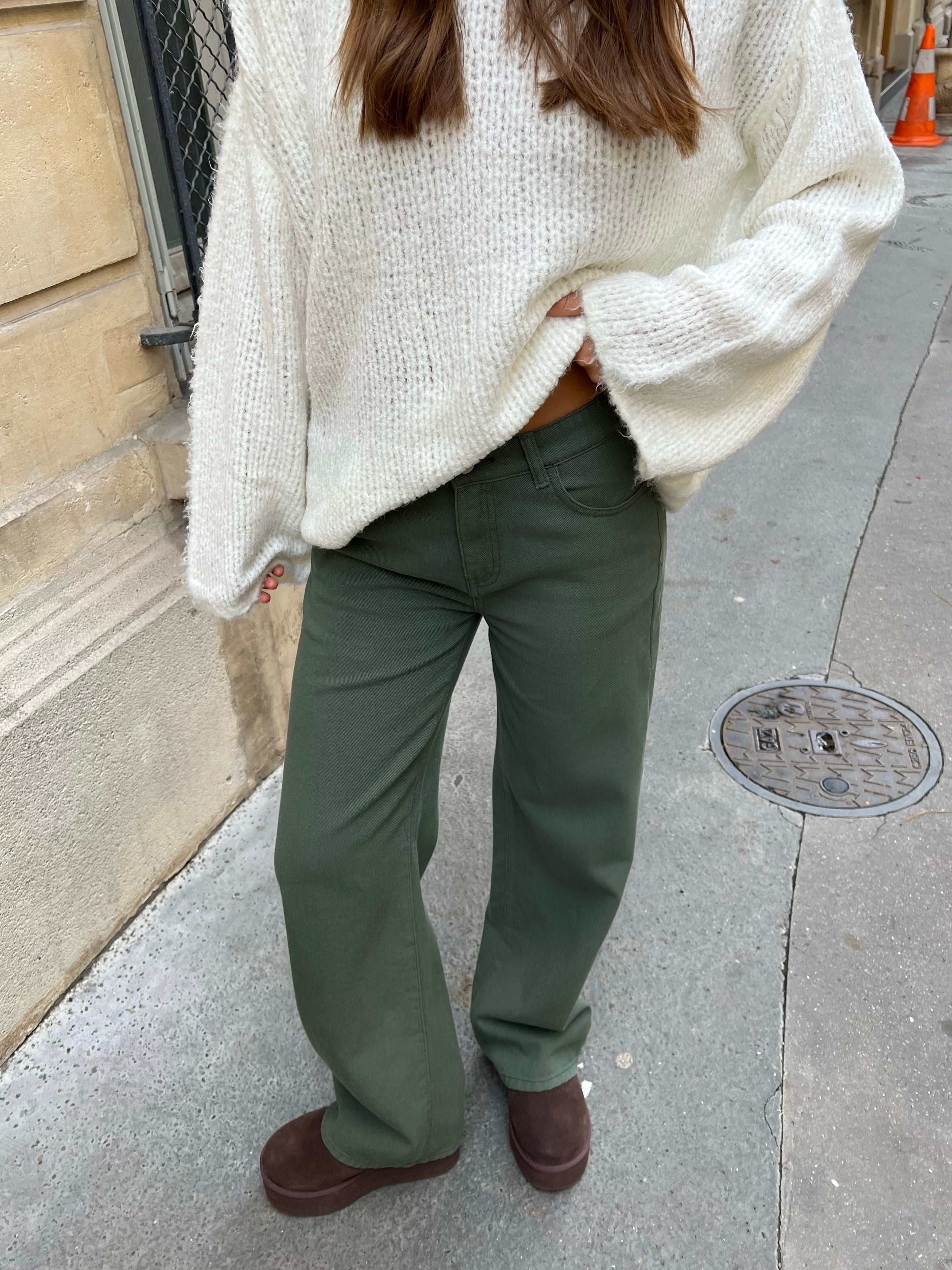 Army Green jeans in the coolest loose fit. The trousers are quite low waisted.