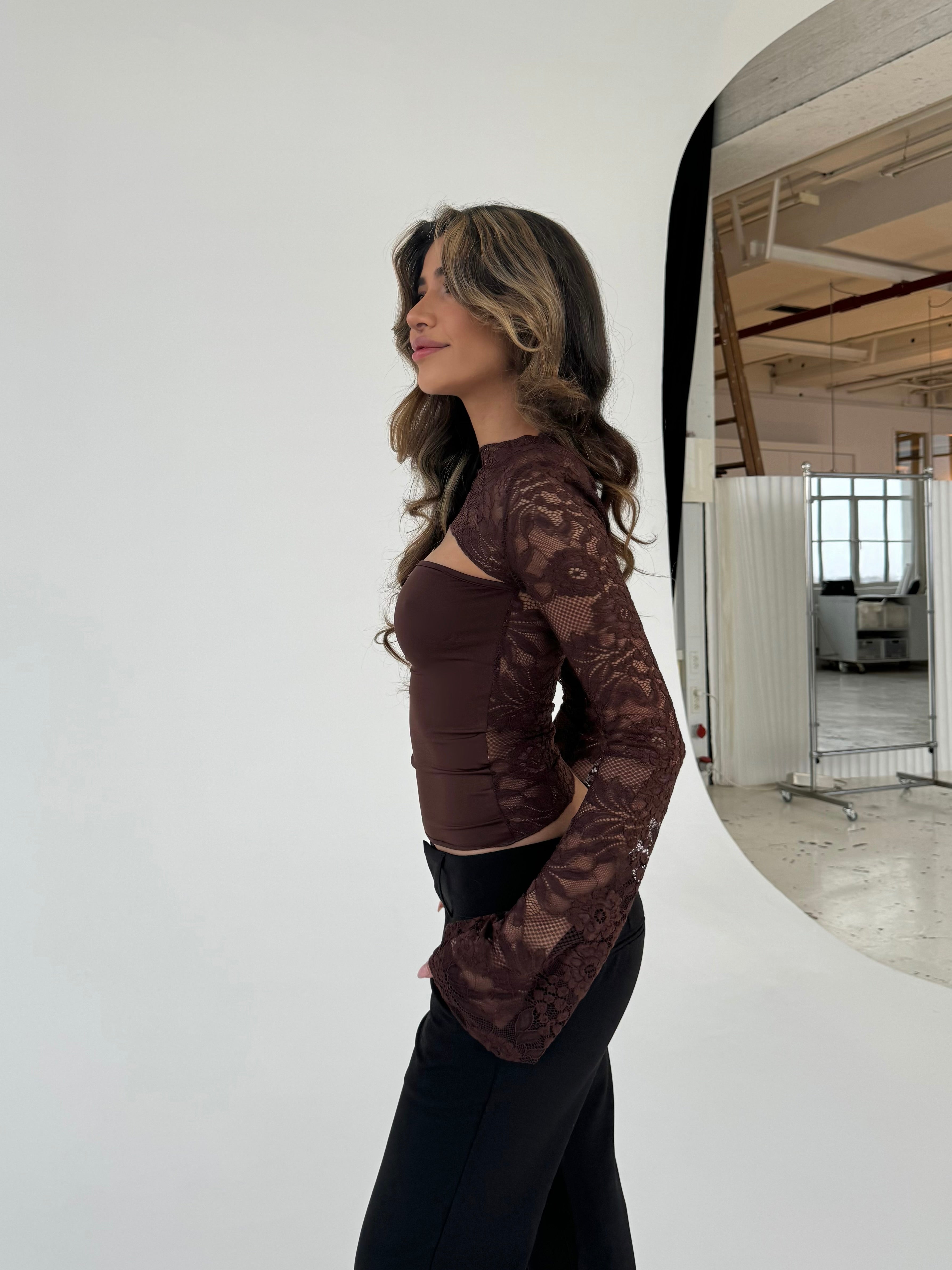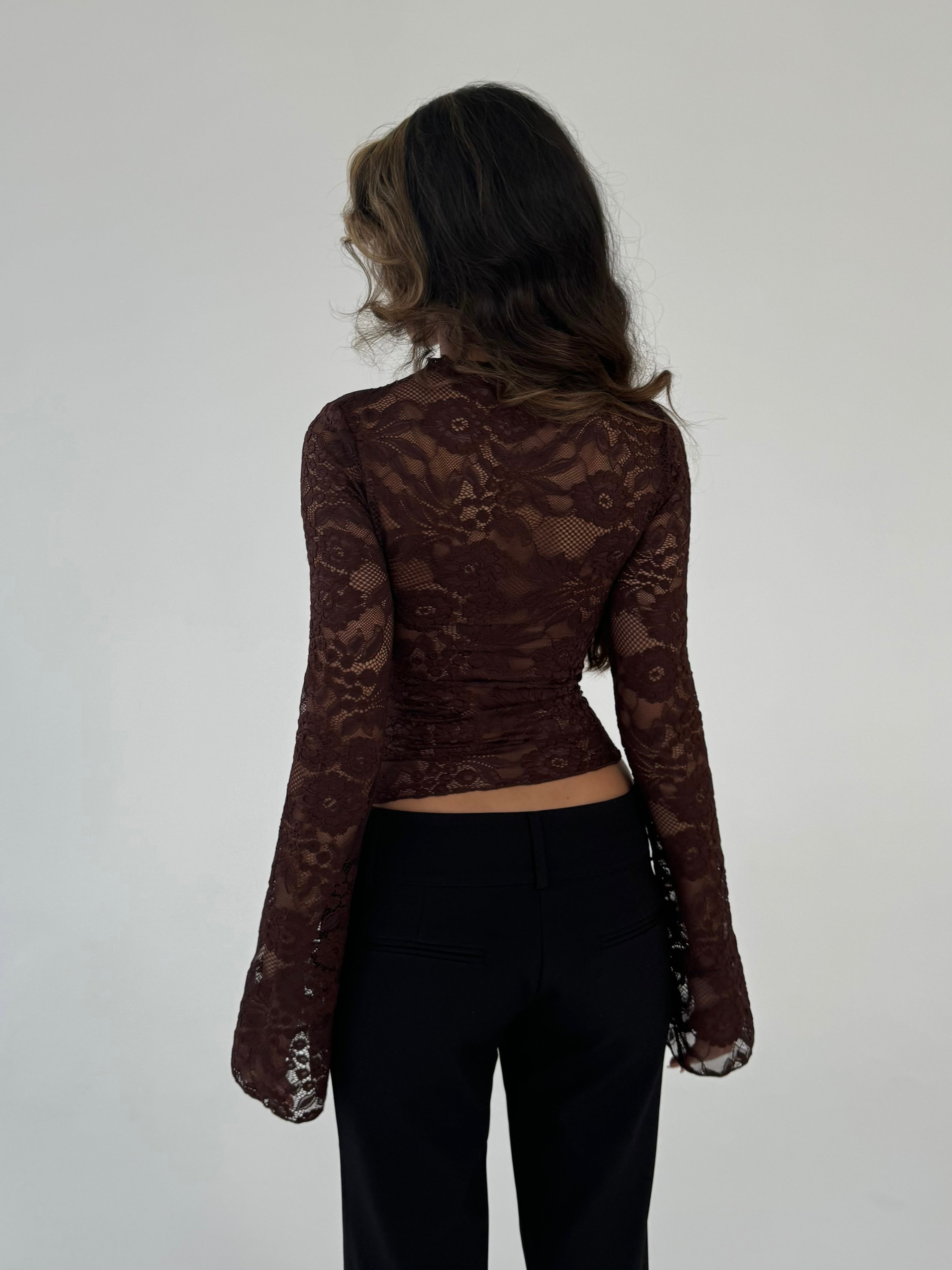 Lara lace long sleeve top - dark brown