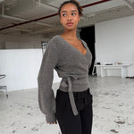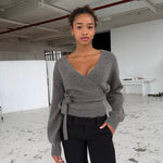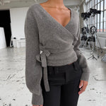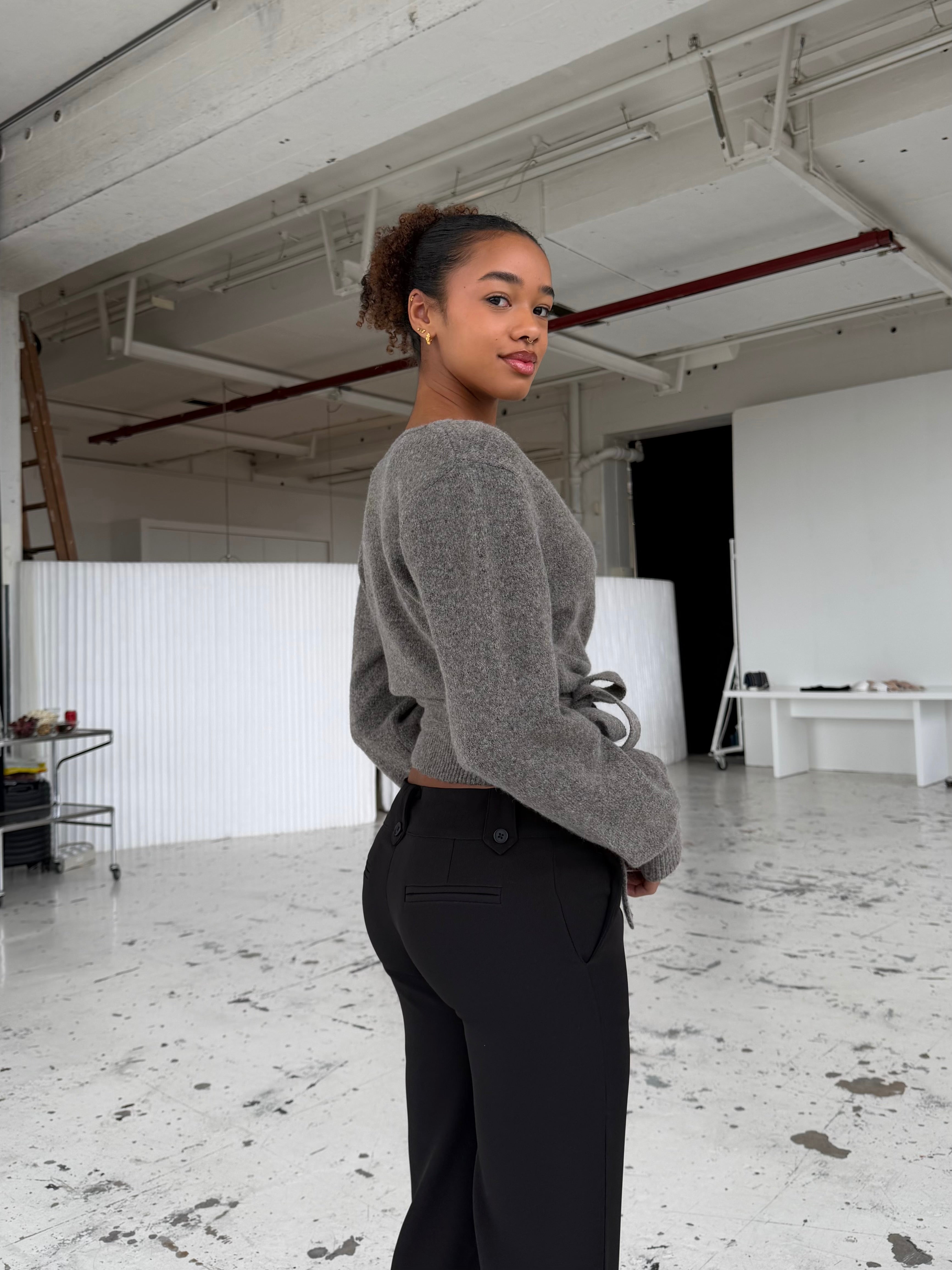 Cardigan in the softest material, made from a wool blend. It is tied at the side and can be tightened as desired.