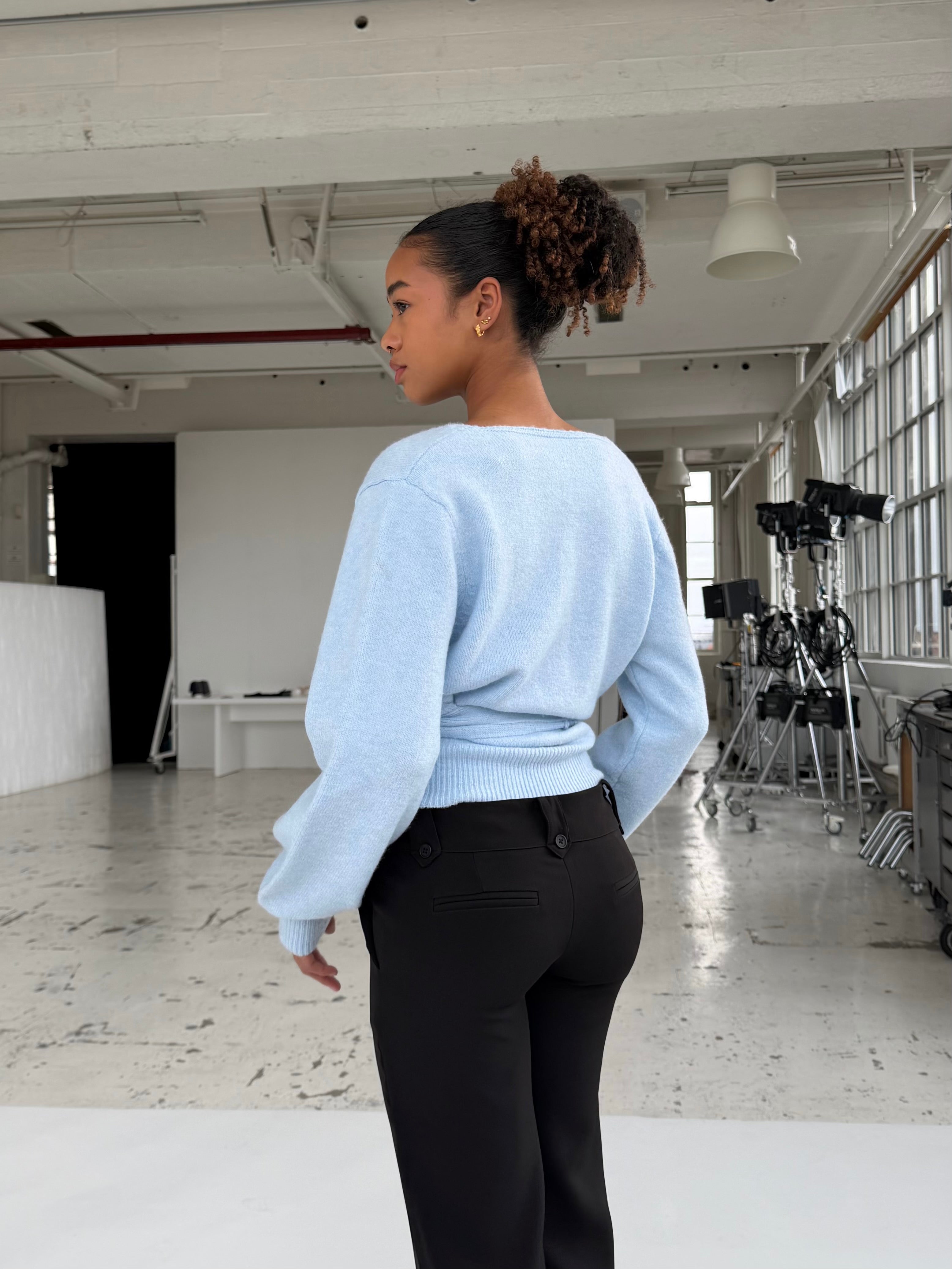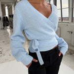 Cardigan in the softest material, made from a wool blend. It is tied at the side and can be tightened as desired.