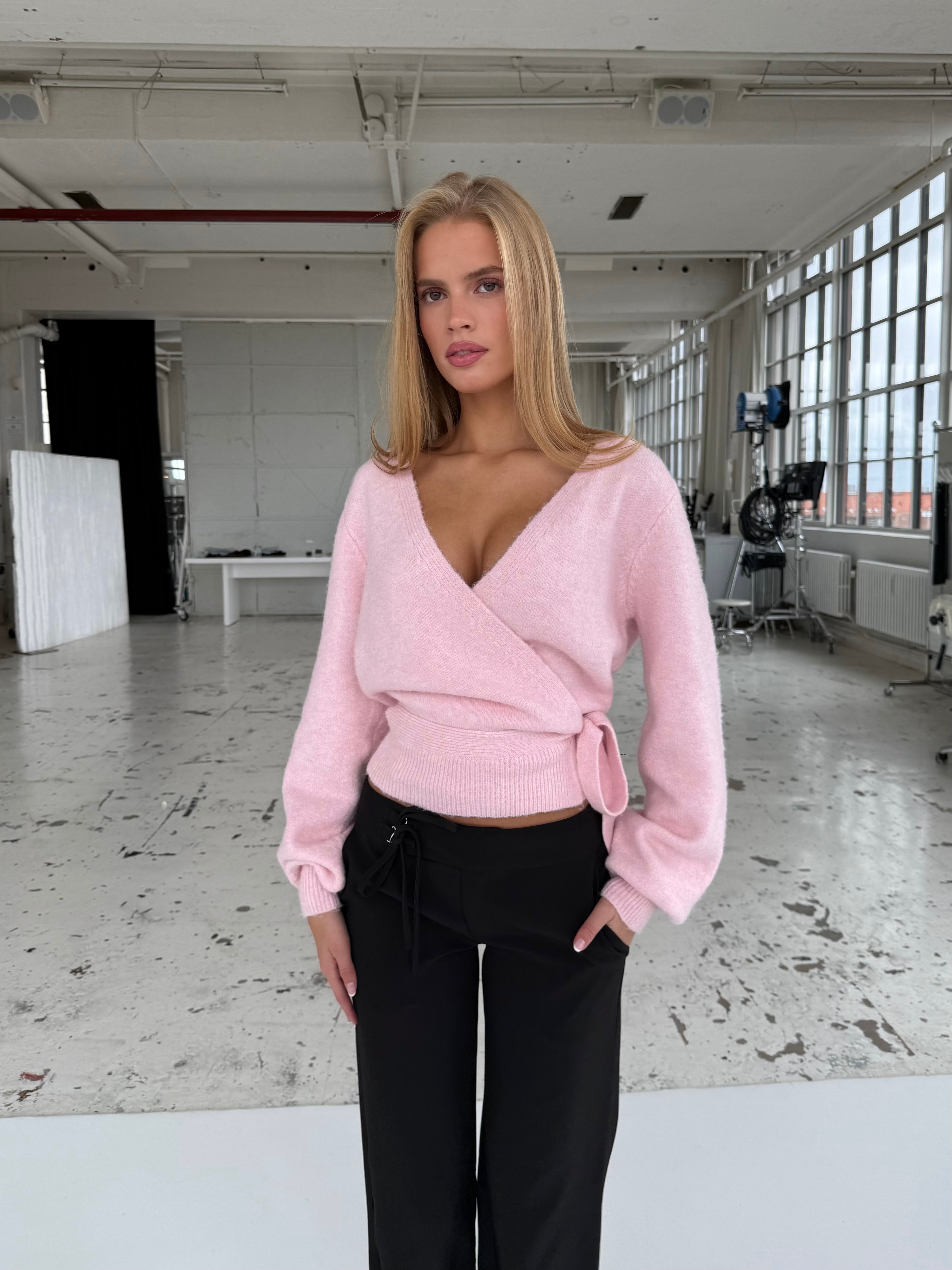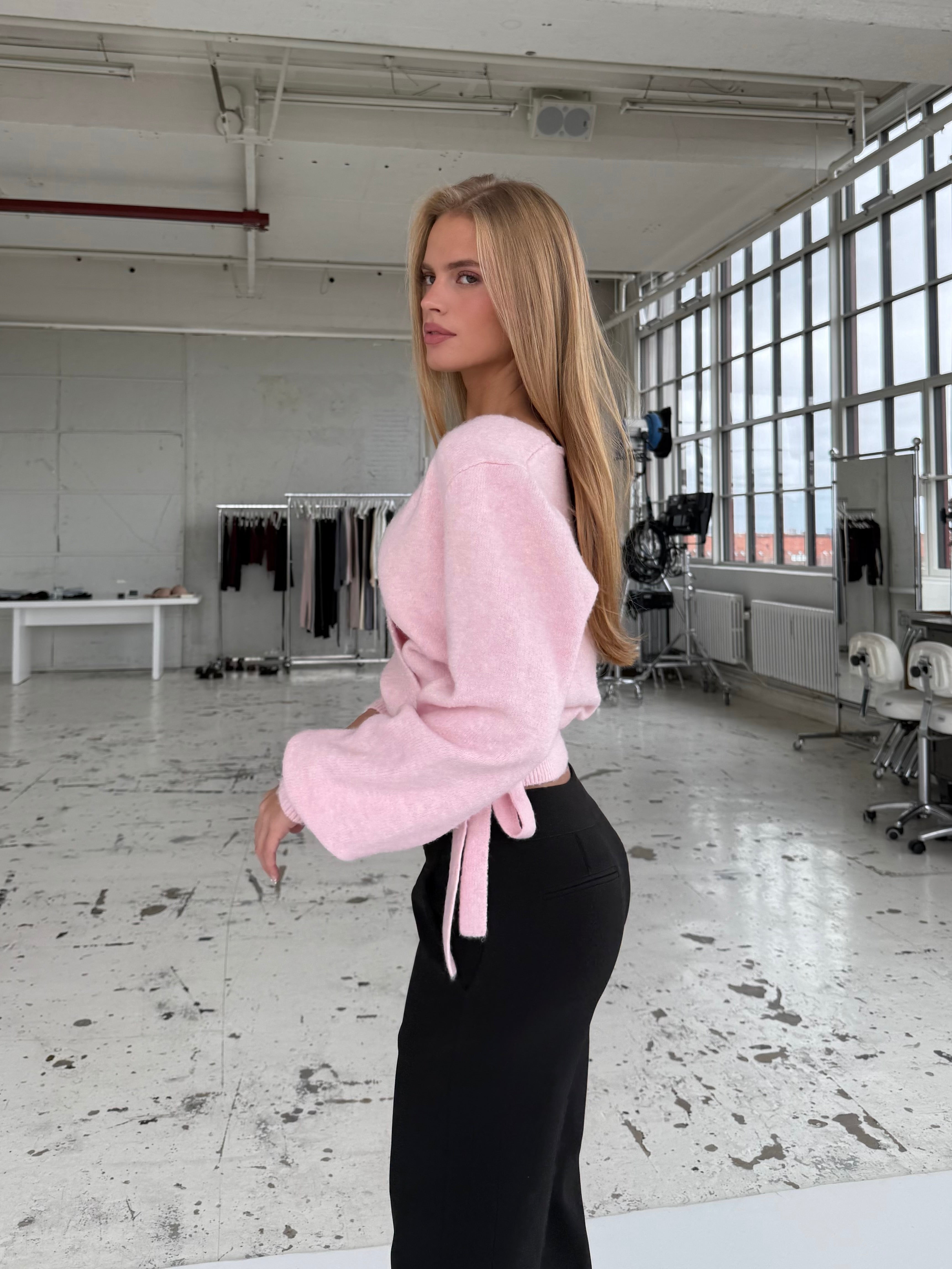 Cardigan in the softest material, made from a wool blend. It is tied at the side and can be tightened as desired.
